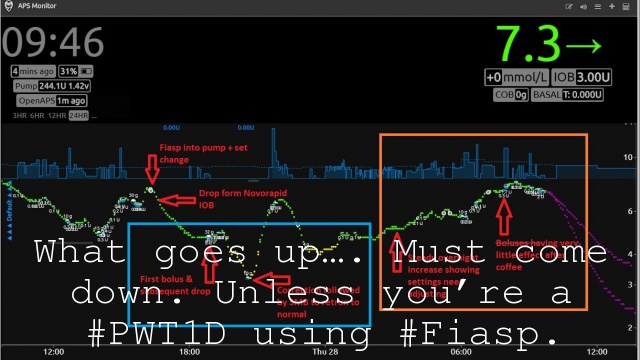I suspect that many people have encountered similar issues with getting too caught up in the hype. Whilst Fiasp does work well, and is fast, there are undoubted issues that people are seeing with the insulin, and if you don’t treat it and the diabetes with the respect it’s due, it will come back and bite you. I wonder whether the amount of variance that I and others have seen can also be attributed to factors that we haven’t properly considered?